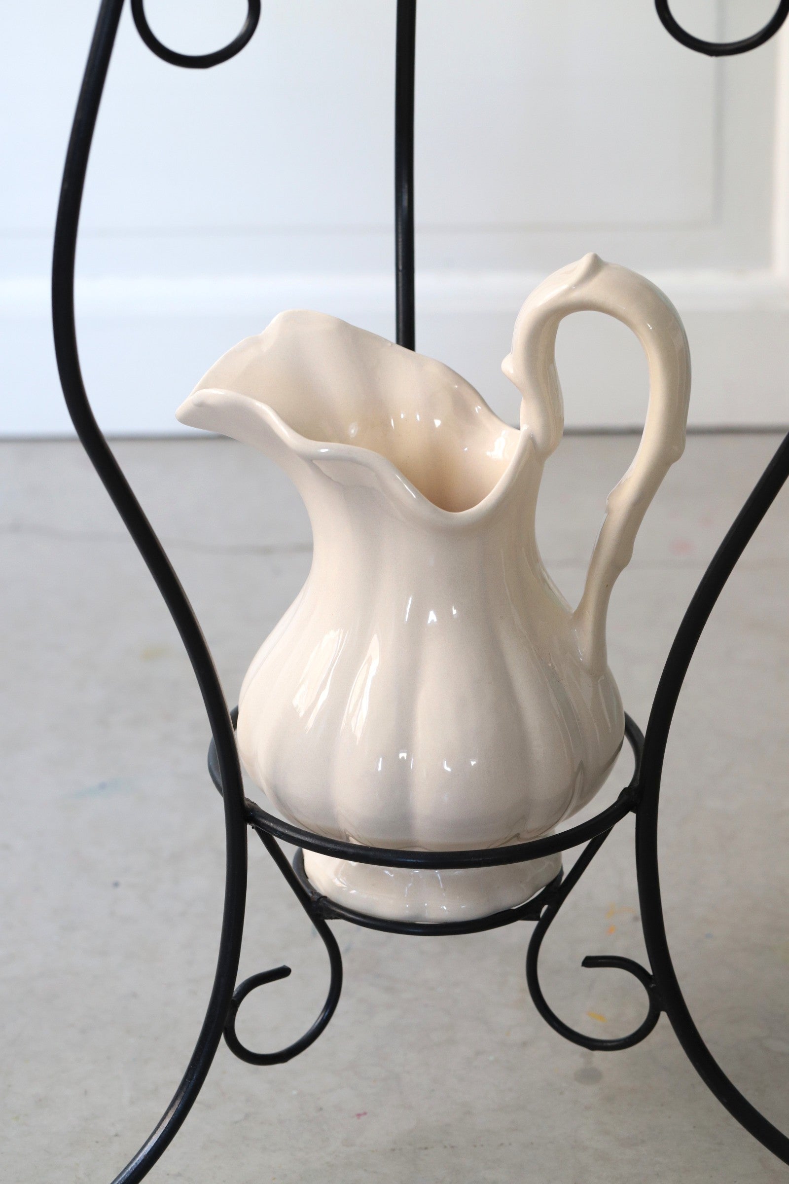 Mõõdud: kõrgus 93 cm, diameeter 42 cm/ kann- kõrgus 32 cm, diameeter 18 cm, kauss- kõrgus 10 cm, kausi diameeter 34 cm/ seebialus- kõrgus 3 cm, diameeter 15 cm
